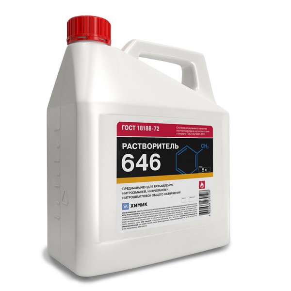 Универсальный растворитель 646 предназначен для работы с разнообразными лакокрасочными средствами. Применяют его в быту, промышленности, чтобы разбавлять краски, обезжиривать поверхности, промывать малярные инструменты.