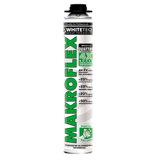 Makroflex ShakeTec - монтажная пена для нанесения при температуре до -10°C, которую можно использовать в сухих и холодных условиях. Пена имеет превосходное соотношение открытых-закрытых ячеек и высокую механическую прочность. Проста в употреблении, наносится при помощи тонкой трубки-аппликатора. Пена является саморасширяющимся материалом, в процессе твердения увеличивается в объеме примерно в два раза. Обладает превосходной адгезией к большинству таких строительных материалов, как дерево, бетон, камень, металл, и т.д. Изделие не содержит хлор-фтор-углеродных пропеллентов.